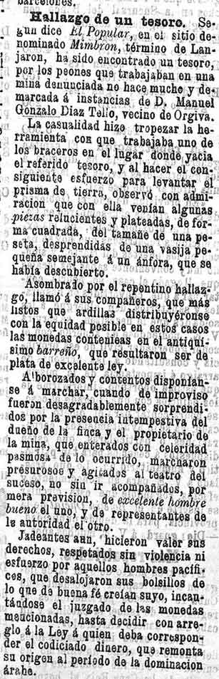8 de septiembre de 1898. Hallado un tesoro en Lanjarón