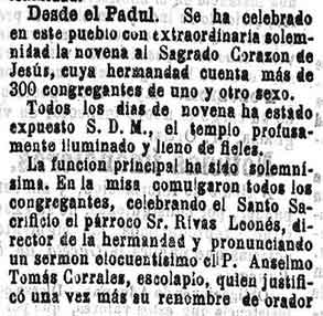 14 de junio de 1899. Novena al Corazón de Jesús en Padul