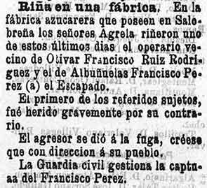 15 de junio de 1899. Un vecino de Albuñuelas tiene una riña