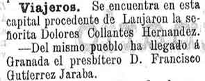 11 de noviembre de 1899. Viajeros de Lanjarón