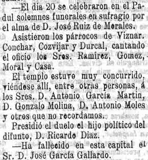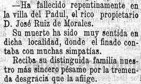 23 de noviembre de 1899. Muere en Padul José Ruiz Morales