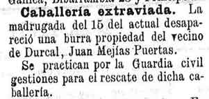 19 de noviembre de 1899. Desaparece una burra en Dúrcal