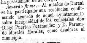 19 de noviembre de 1899. Incapacidad de concejales de Dúrcal