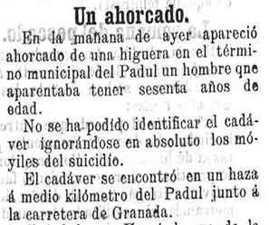 4 de noviembre de 1899. Un ahorcado en el Padul