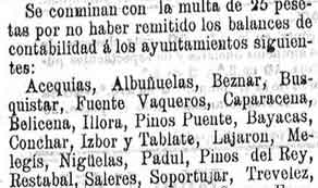 5 de noviembre de 1899. Multados Acequias, Albuñuelas,