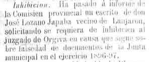7 de noviembre de 1899. Inhibición en un juicio de Lanjarón