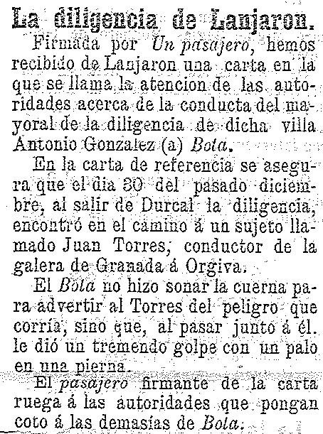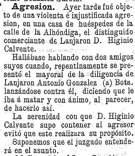 21 de enero de 1900. Agredido comerciante de Lanjarón