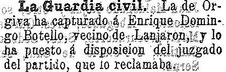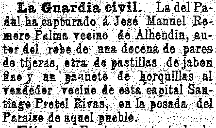 28 de enero de 1900. Captura en el Padul de un delincuente