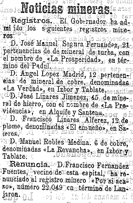 4 de enero de 1900. Concesiones mineras en Ízbor y Tablate