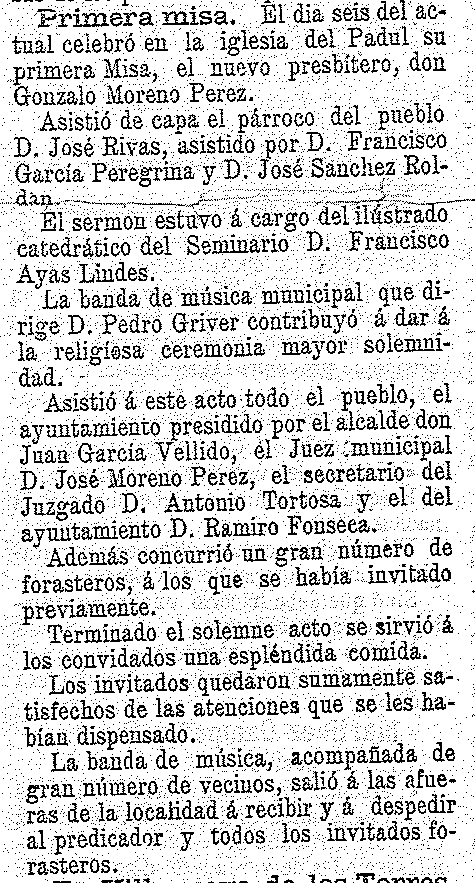 9 de enero de 1900. Presbítero de Padul Don Gonzalo Moreno