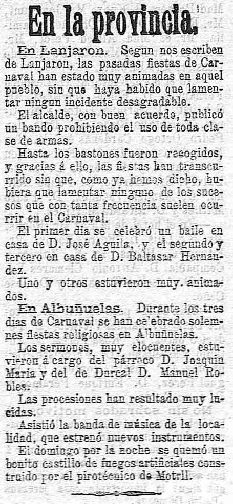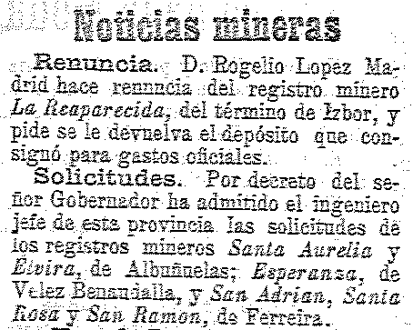 29 de marzo de 1900. Minas en Ízbor y Albuñuelas