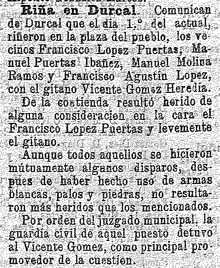 5 de enero de 1900. Riña en Dúrcal