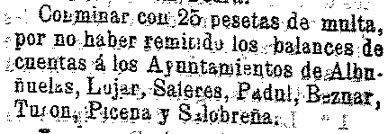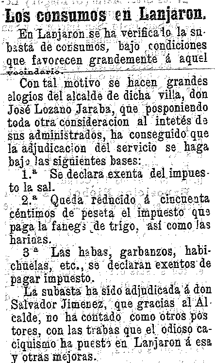 9 de junio de 1901. Subasta de consumos en Lanjarón