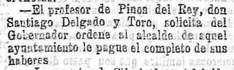 21 de noviembre de 1901. Profesor de Pinos del Rey solicita