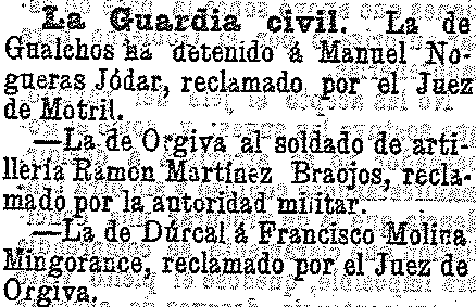3 de noviembre de 1901. Detención en Dúrcal