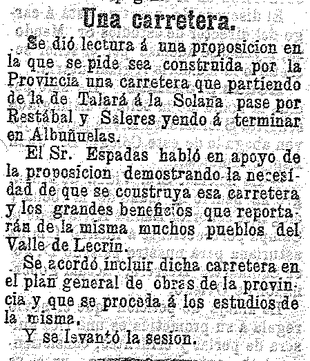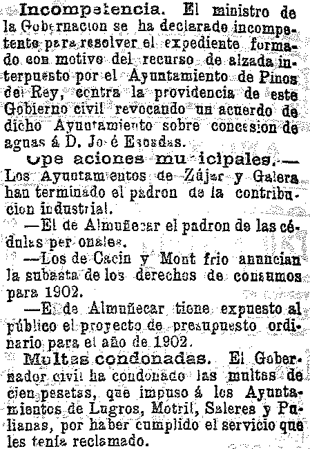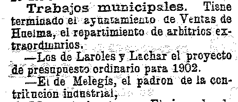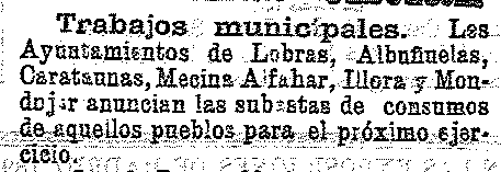 15 de octubre de 1901. Subastas de consumos en Albuñuelas y