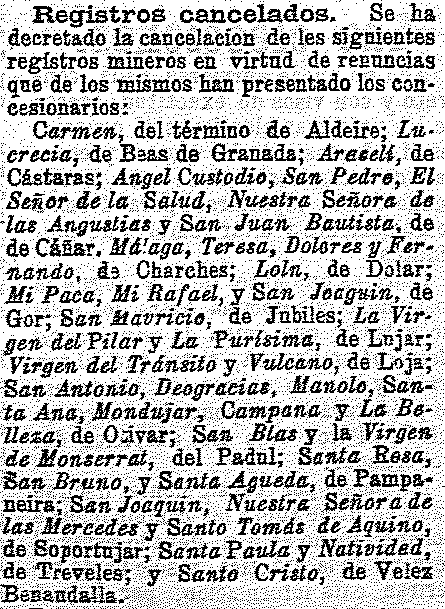 12 de octubre de 1901. Minas de Mondújar y Padul