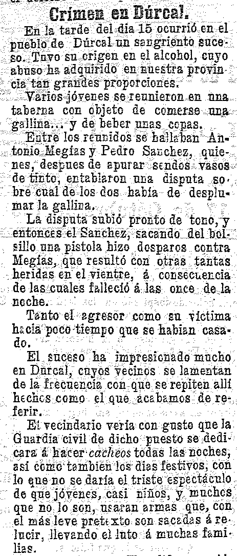 17 de octubre de 1901. Crimen por una gallina en Dúrcal