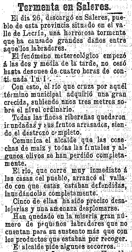 1 de octubre de 1901. Tormenta en Saleres