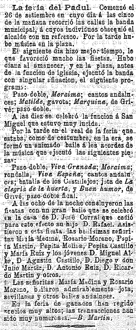 1 de octubre de 1901. Fiestas en Albuñuelas