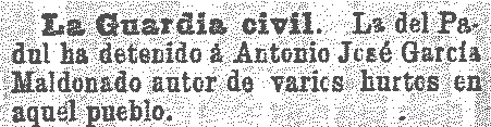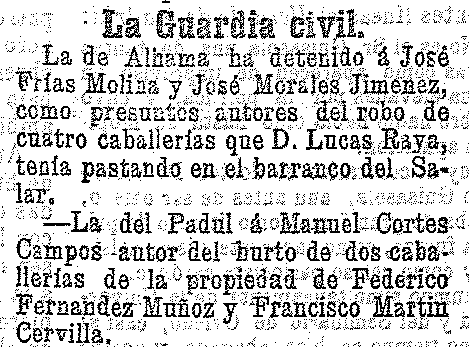 31 de octubre de 1901. Detención en Padul por robar dos