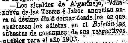 10 de octubre de 1902. Subasta de consumos en Ízbor