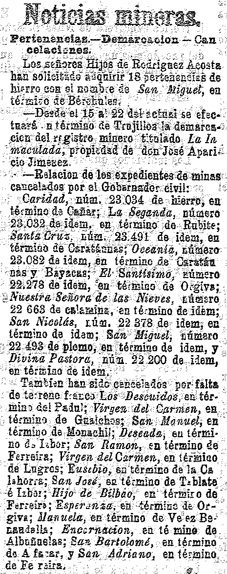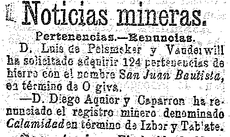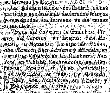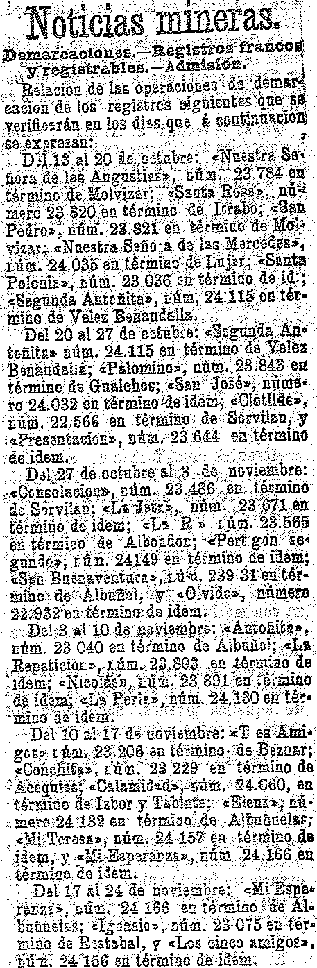8 de octubre de 1902. Minas de Padul, Ízbor, Tablate y