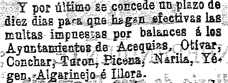 12 de octubre de 1902. Multas a los ayuntamientos de Acequias