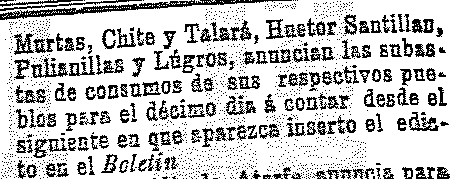 15 de octubre de 1902. Subasta de consumos de Chite Talará