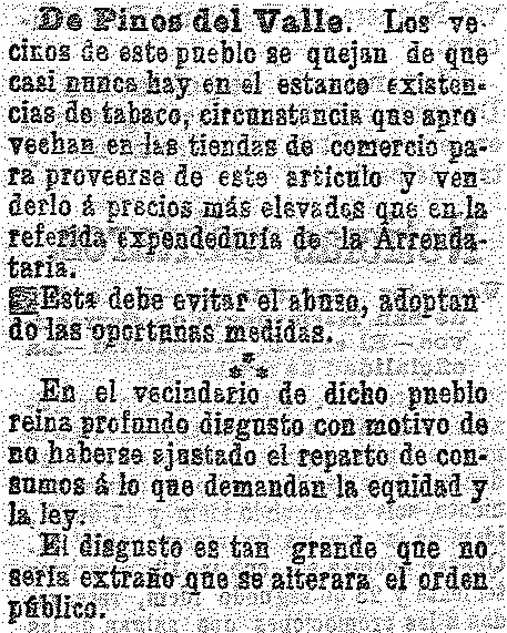28 de octubre de 1902. Los vecinos de Pinos del Valle se