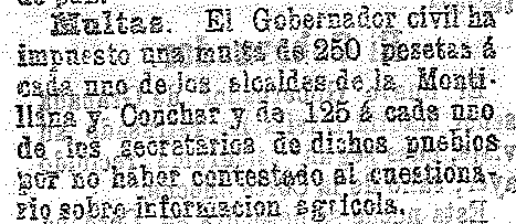 28 de octubre de 1902. Multa al alcalde de Cónchar