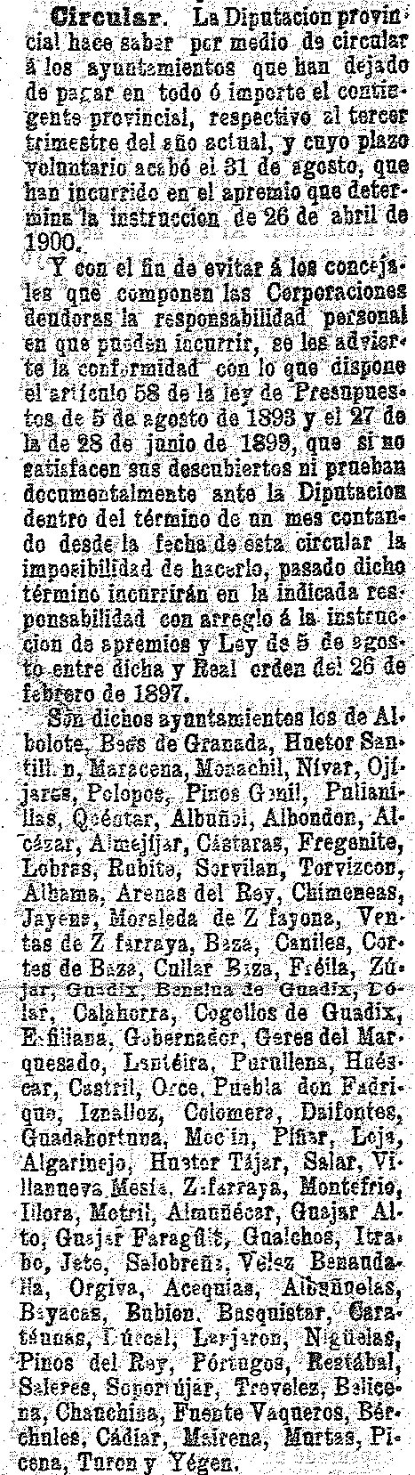 2 de octubre de 1902. Diputación avisa a los ayuntamientos de
