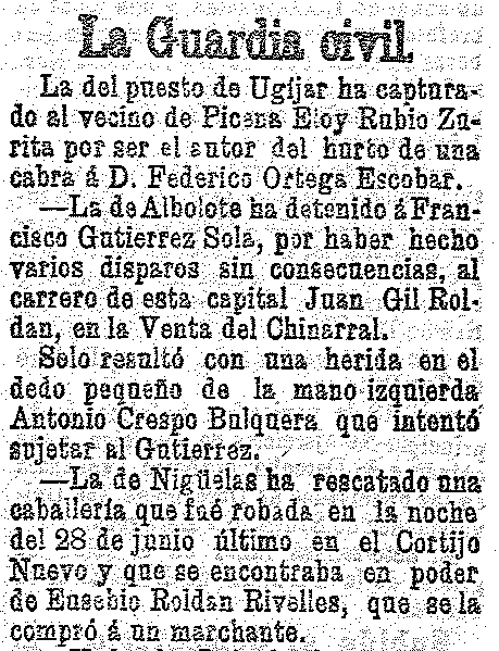 31 de octubre de 1902. La guardia civil de Nigüelas rescata