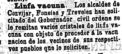 12 de Abril de 1903. El alcalde de Cozvíjar pide linfa