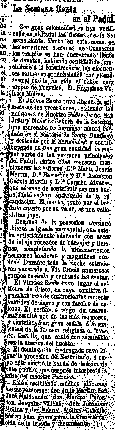 15 de Abril de 1903. Semana Santa en el Padul