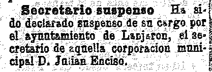 16 de Abril de 1903. Ha sido suspendido el secretario del