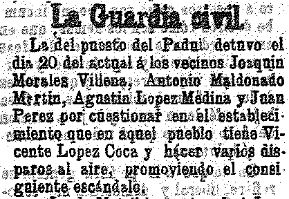 23 de Abril de 1903. Detención en Padul por hacer disparos al