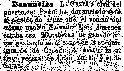 26 de Abril de 1903. Denuncia en el Padul a un ganadero de