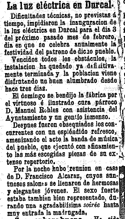 8 de Abril de 1903. Se inaugura la luz eléctrica en Dúrcal