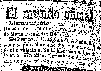 8 de Abril de 1903. Subasta de consumos en Albuñuelas