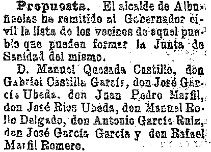 12 de agosto de 1903. Junta de Sanidad de Albuñuelas