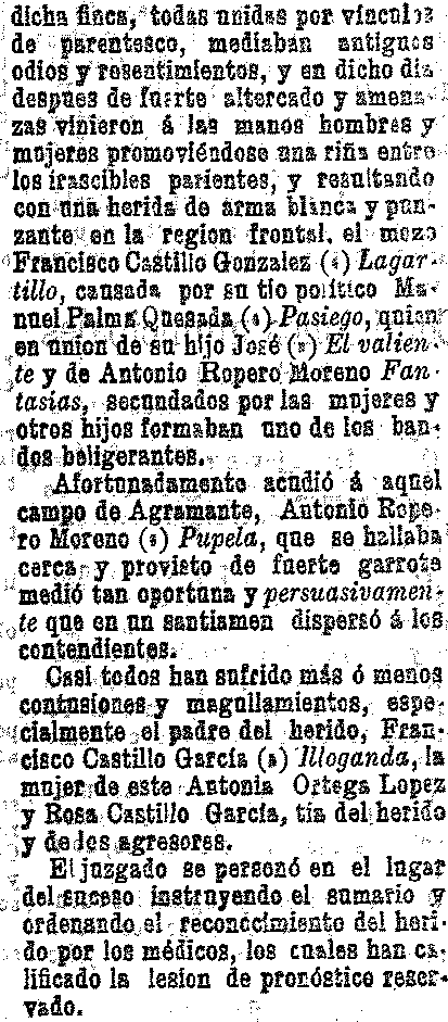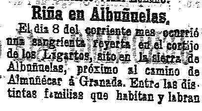 14 de agosto de 1903. Riña en las Albuñuelas