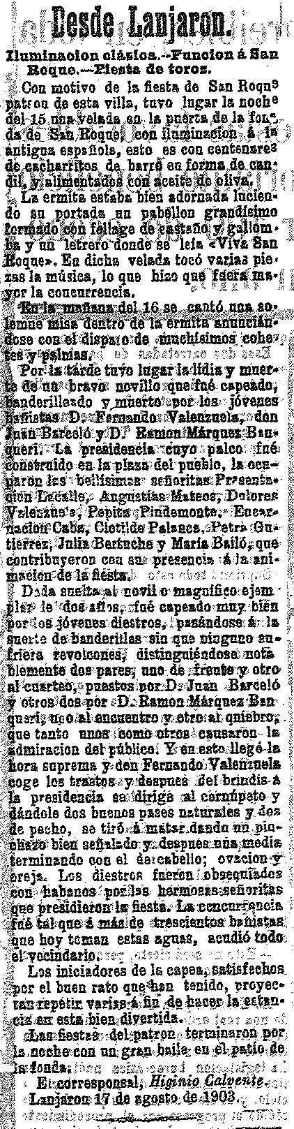 19 de agosto de 1903. Fiestas en Lanjarón