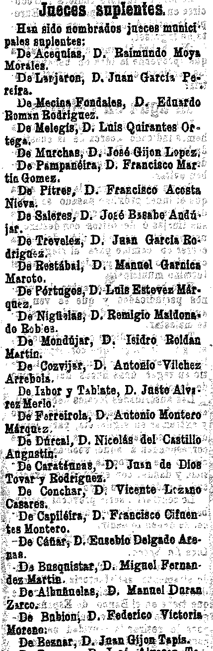 21 de agosto de 1903. Jueces suplentes de Acequias,