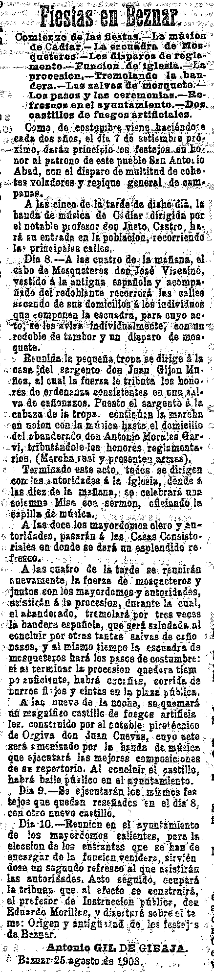 27 de agosto de 1903. Fiestas en Béznar
