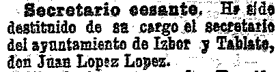 4 de agosto de 1903. Destituido el secretario de Ízbor