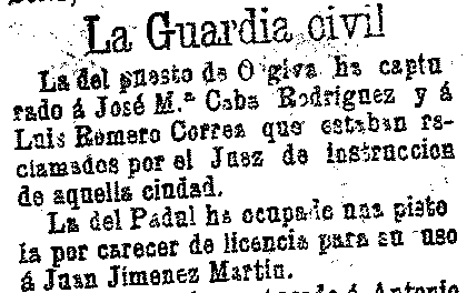 6 de agosto de 1903. Se ocupa una pistola en el Padul