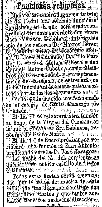 25 de diciembre de 1903. Función al Santísimo en el Padul