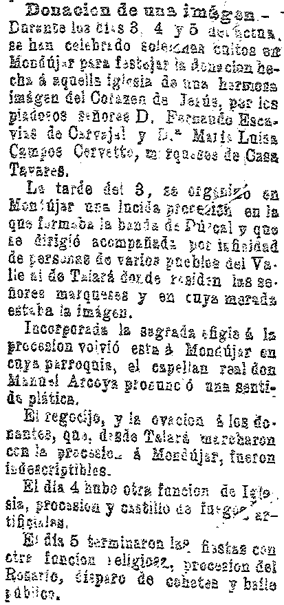 10 de octubre de 1903. Donación de imagen del Corazón de