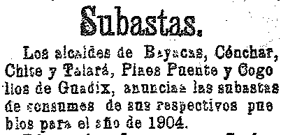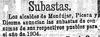 22 de octubre de 1903. Subasta de consumos en Mondújar